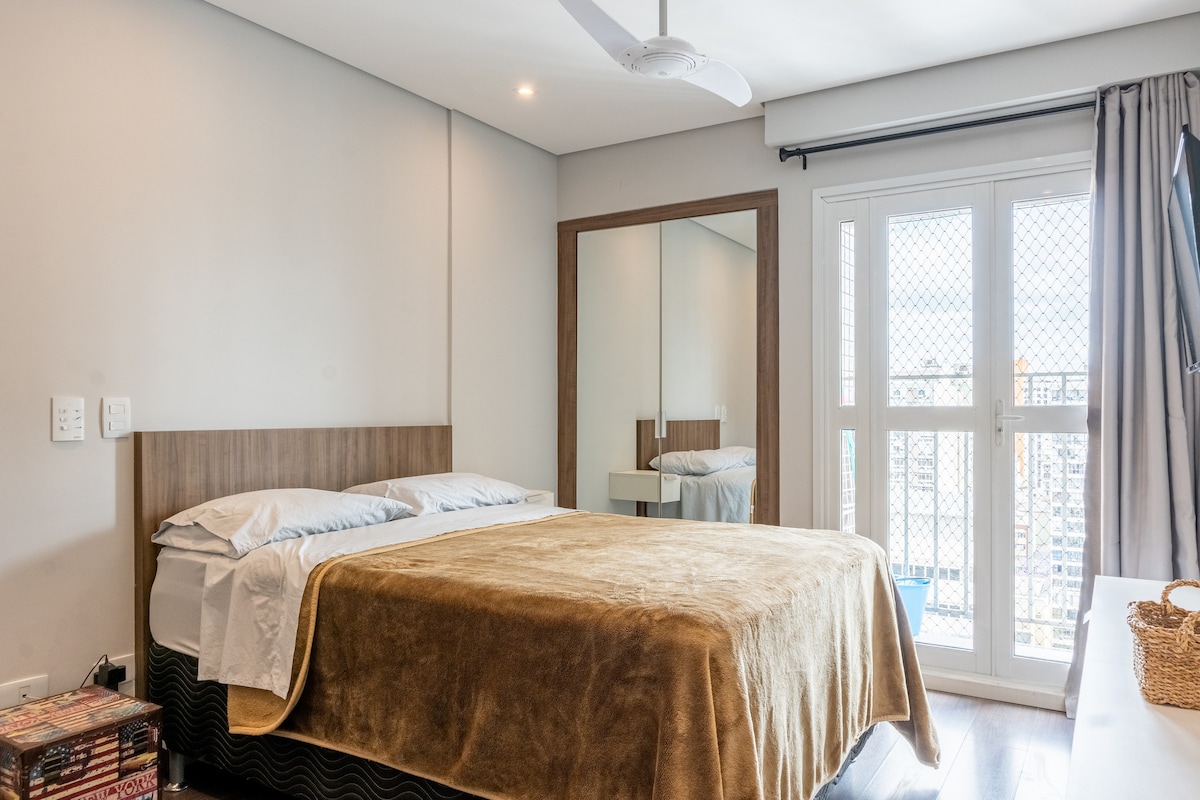 Estudio moderno, nuevo, acogedor, ubicación perfecta, con una hermosa vista desde el balcón, especialmente por la noche. Wifi rápido, escritorio, TV inteligente de 55”, cama Queen. Aire acondicionado (frío/calor). Lavadora y secadora y una hermosa isla en la cocina. 50m2 de mucho estilo-27ºandar, Silencioso. En el Centro/Batel, cerca de comercios, bancos, centros comerciales, polo gastronómico y Hospital. En el edificio: piscina, gimnasio, sala de juegos, sauna, jacuzzi, conserjería las 24 horas.