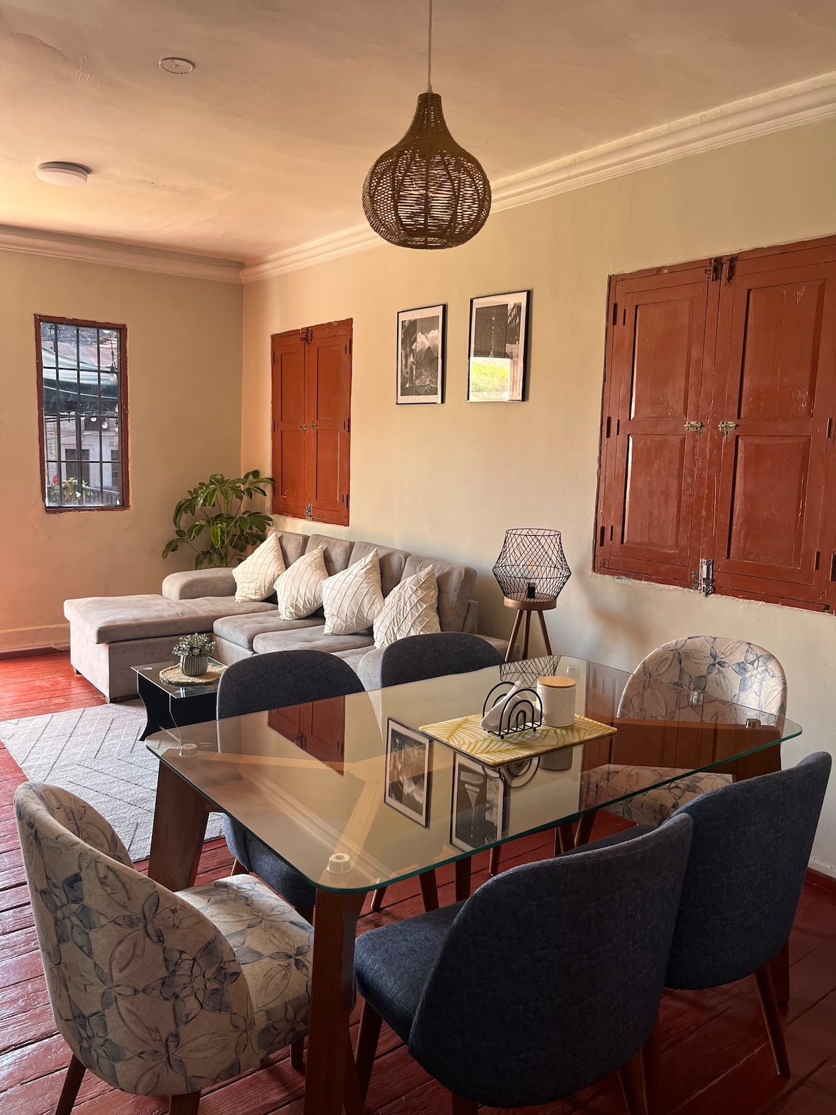 Bonito apartamento privado en el segundo piso ubicado a tres manzanas de la plaza principal, tranquilo y con zonas cómodas como baño privado, sala de estar y comedor. Tenemos disponible secador de pelo, cocina y calentador portátil. Entrada compartida. Tendrás un anfitrión que habla inglés con fluidez y que estará encantado de ayudarte en su tiempo libre (siempre estaré disponible a través de internet si no estoy presente). El apartamento está situado en una casa colonial.