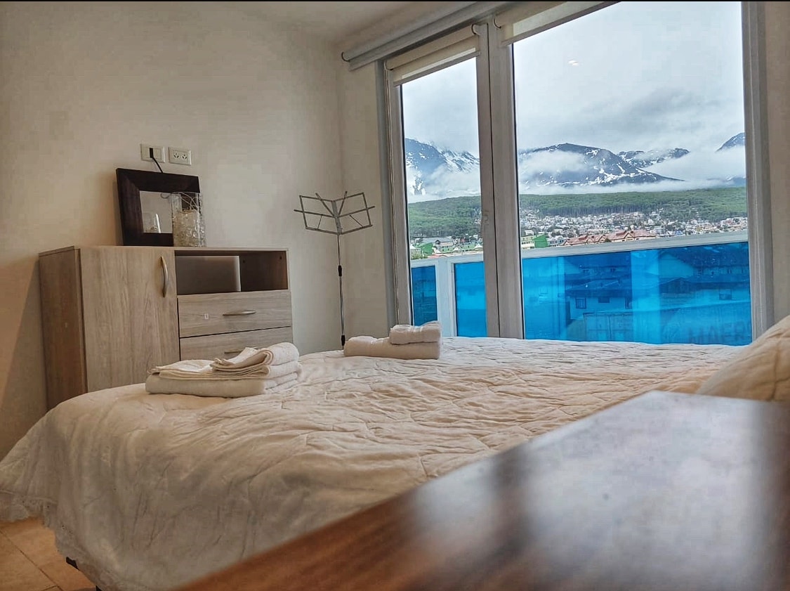 Hermoso Departamento a pasos del centro de Ushuaia. Dispone de un dormitorio con cama matrimonial o dos camas individuales. La cocina comedor es amplia y comoda, y cuenta con todo el equipamiento para que tengas total independencia. Equipado con TV Smart con cable e internet wifi de alta velocidad. El baño es espacioso y esta totalmente equipado. Imperdible visitar la terraza con vista 360 de toda la ciudad. Este lugar especial está cerca de todo: va a ser muy fácil planear tu visita.
