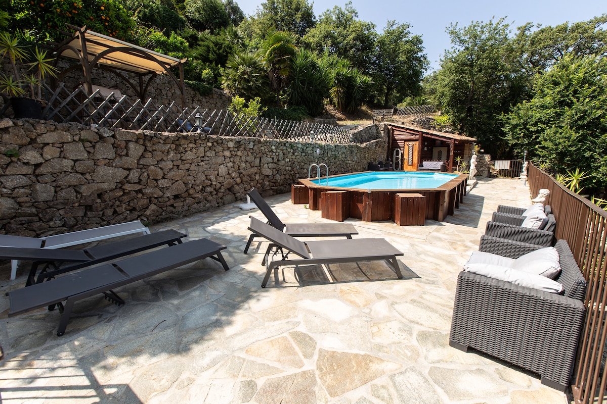 Le rêve pour un séjour à deux ! A 800m du village de Erbalunga, un lieu calme, une magnifique vue mer et montagne, juste ce qu’il faut pour passer des moments agréables. Une mini piscine privée, chauffée à 33 degrés de novembre à mai, une terrasse couverte à l’abri de la chaleur. Une ambiance exotique pour une relaxe parfaite ! 90m2 conçu pour le farniente ! Vous aurez également l’occasion de visiter l’atelier des bijoux Acquadila qui se trouve sur place.