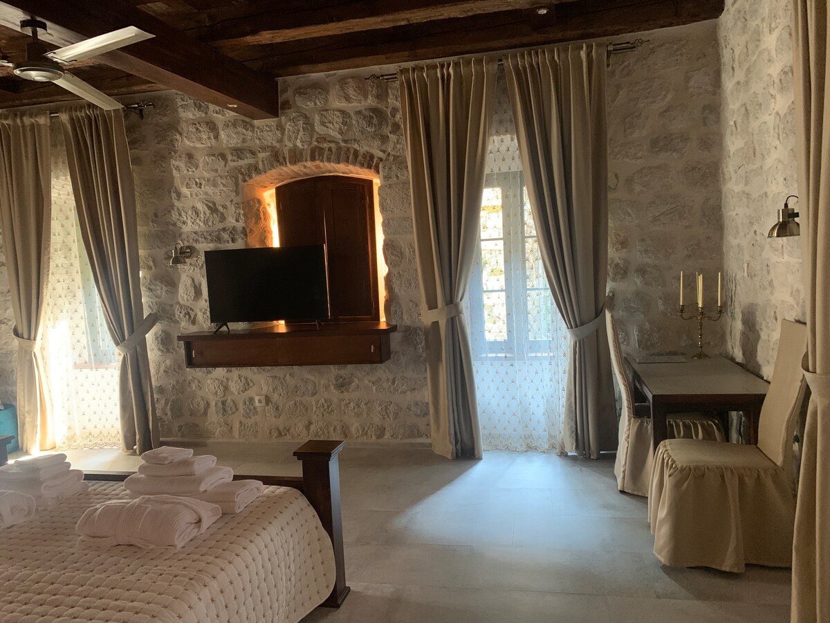 KAŽIN is an elegant universe of true luxury in the center of Kotor Old Town, that is a perfect blend of preserving the traditions of Venetian taste and modern comfort. Unique luxury 4**** rooms inside the stone villa which was protected for centuries by the imposing walls that surround the Old Town, are just a few minutes walk from the hills and the sea shore, in a whirlwind of the mixed scent of the sea and fresh mountain air. Enjoy your vacation in most sophisticated and elegant way .