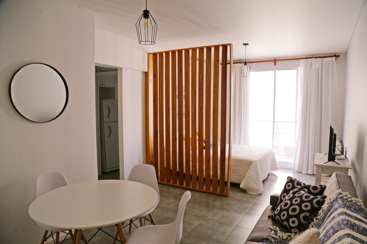 Hermoso mono-ambiente nuevo, en el mejor barrio residencial de Chivilcoy. A 8 cuadras de la Plaza Principal y a 4,5 cuadras de la zona comercial. Muy luminoso, con patio, excelente decoración y equipamiento completo. Cuenta con heladera, cocina, microondas, barra desayunadora, placares, televisor, calefacción por losa radiante, aire acondicionado.