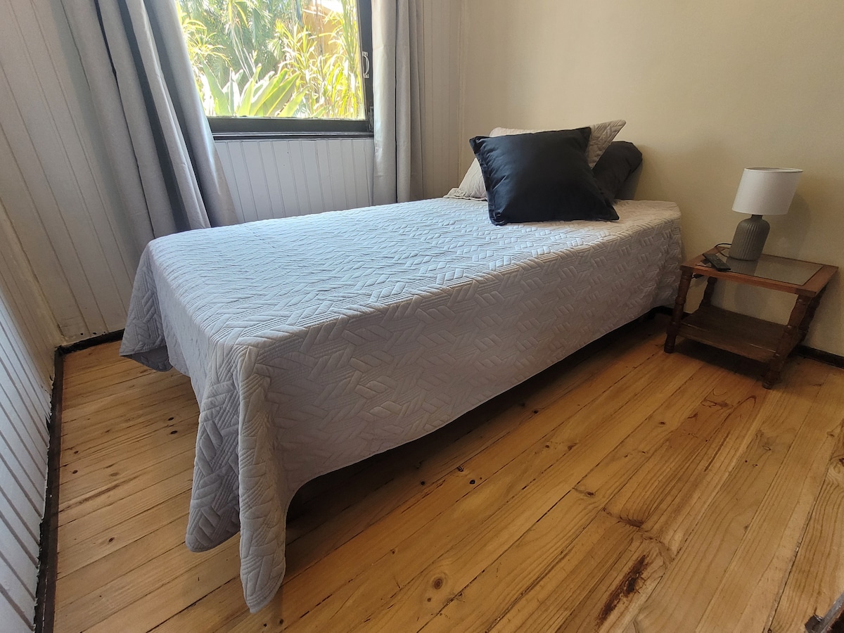 Habitación doble en hostal "La Casa del Jardín", ubicado en Av. Esmeralda, corazón de la comuna de Colina. Baño compartido solo con una habitación adicional single. Cuenta con dos camas de una plaza y media cada una, WiFi y Smart TV con Netflix. Acceso a cocina, comedor y living con aire acondicionado y TV amplia. Jardín y terraza para descansar. A 15 min de Chicureo y Mall Plaza Norte, cerca de supermercados, bancos y servicios de salud.