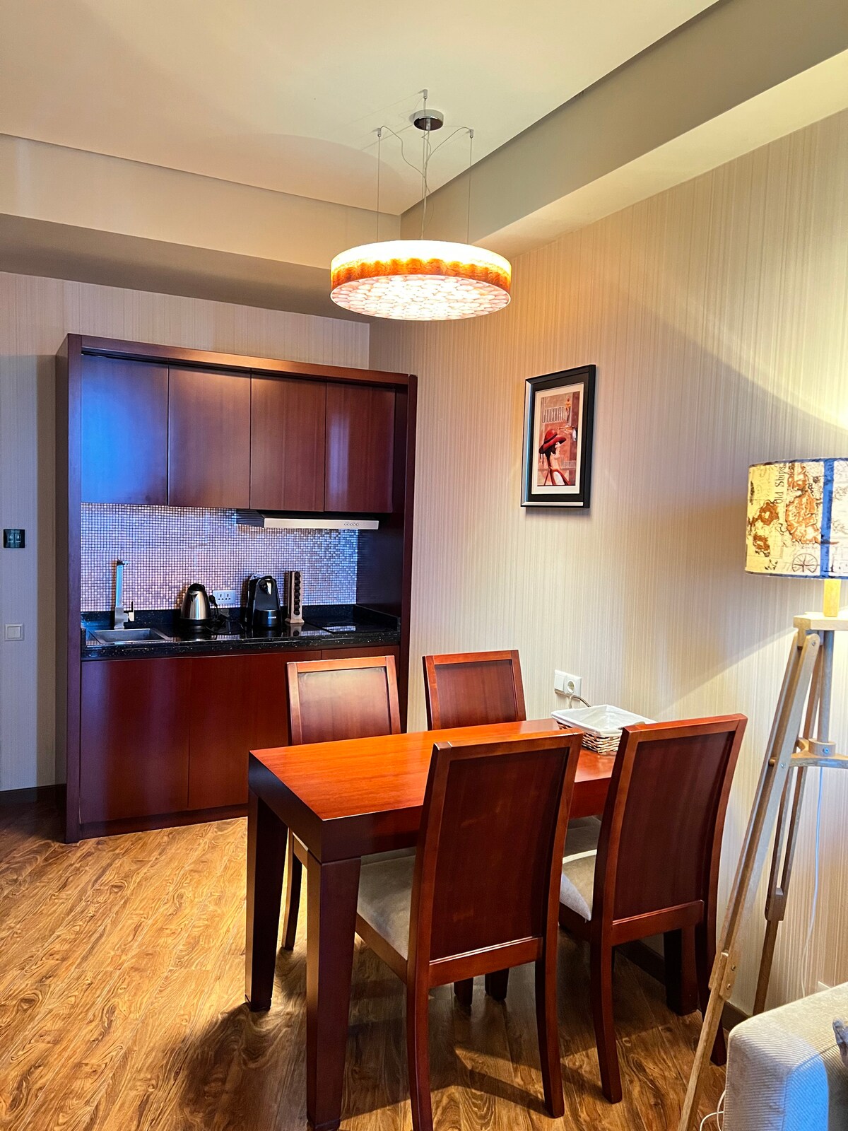 El departamento está ubicado en el centro, en una zona muy desarrollada, rodeado de tiendas de comestibles, farmacias, hospital, gimnasio, restaurantes. El edificio está en el piso 24, el departamento está ubicado en el 8,servido por 4 ascensores, cámaras de vigilancia 24/7. El apartamento está amueblado con muebles y máquinas de alta calidad, lavadora, lavavajillas, TV, aire acondicionado, nevera, horno para hornear, etc. La cocina está totalmente equipada con cubiertos.