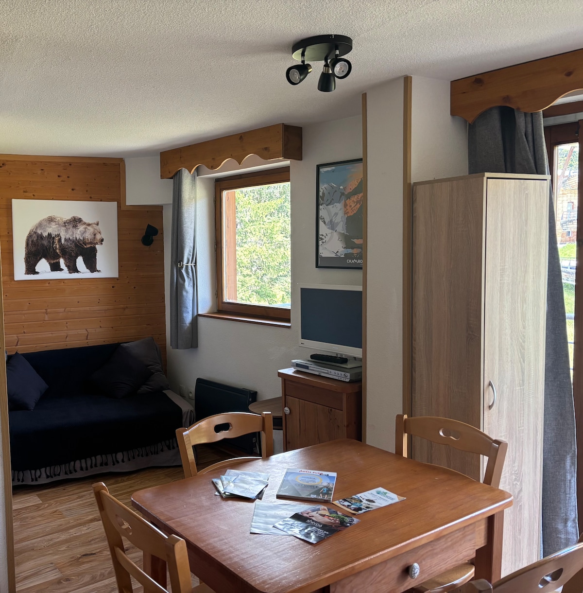 Appartement rénové en mai 2023 situé dans le domaine de l’Arselle, Bachat Bouloud. Venez profiter de la montagne dans ce joli appartement comprenant 1 chambre, un salon, un coin cabine et une belle terrasse exposée plein sud. Appartement au pied des pistes décoré avec soin. Les draps et serviettes ne sont pas fournis. Le ménage devra être fait avec une grande attention. ⛔️ Accès piscine fermé du 12/05/2026 à début juillet 2026 piscine et jacuzzi extérieure chauffée (6pass) même en hiver.