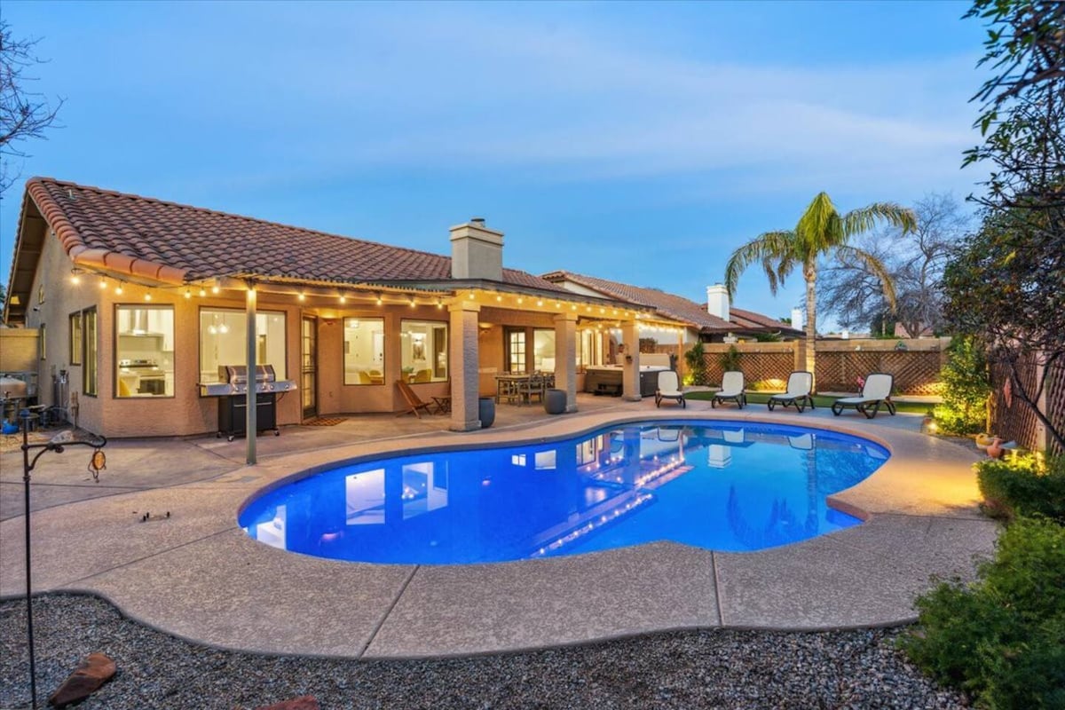¡Escápate a nuestra impresionante casa en el corazón de Chandler! Este refugio de 3 dormitorios y 3 baños es ideal para familias, parejas o amigos que buscan explorar la zona de Phoenix. La cocina totalmente equipada satisface las necesidades culinarias, mientras que el patio trasero presenta un verdadero oasis. Sumérgete en la piscina privada, relájate en el jacuzzi o en la sauna y reúnete junto a la acogedora chimenea. El patio cubierto es perfecto para comer al aire libre, completo con parrilla para barbacoa. Experimenta la combinación perfecta de comodidad y lujo. ¡Reserva ahora para una estancia inolvidable!
