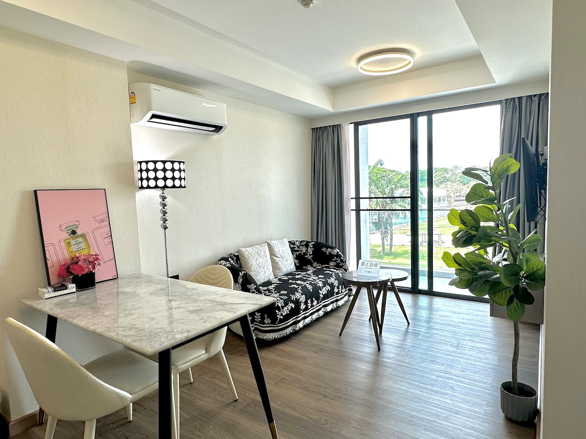 Unlike typical smaller units, you are booking an exclusive 46 m2 retreat-making it one of the largest and most luxurious spaces available in the building. We are perfectly situated on the 15th floor, granting you a panoramic, uninterrupted vista that simply cannot be matched by lower floors. You'll enjoy unobstructed sightlines to the magnificent Doi Suthep mountain, framed perfectly by your window and huge, private balcony. The unit features a King-sized bed and a 47” 4K Ultra HD Smart LED TV.