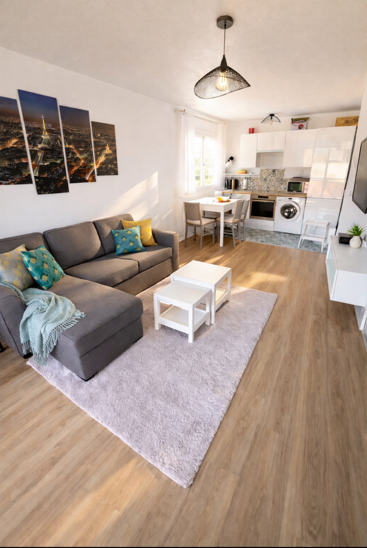 Duplex 65m² lumineux avec PARKING PRIVÉ SOUS TERRAIN GRATUIT et cour aménagée. Fibre 124 Mbps, TV 75", équipement bébé complet. Cuisine équipée, lit queen 160x200, canapé-lit. RER A à 5min → La Défense 8min, Paris 10min. Check-in autonome 24/7. Idéal familles et pros. Note 4,97/5 - Superhôte. Calme absolu, tout à pied : commerces, restaurants, parcs. Barbecue, lave-linge, Netflix inclus. Animaux bienvenus. Réservation instantanée !