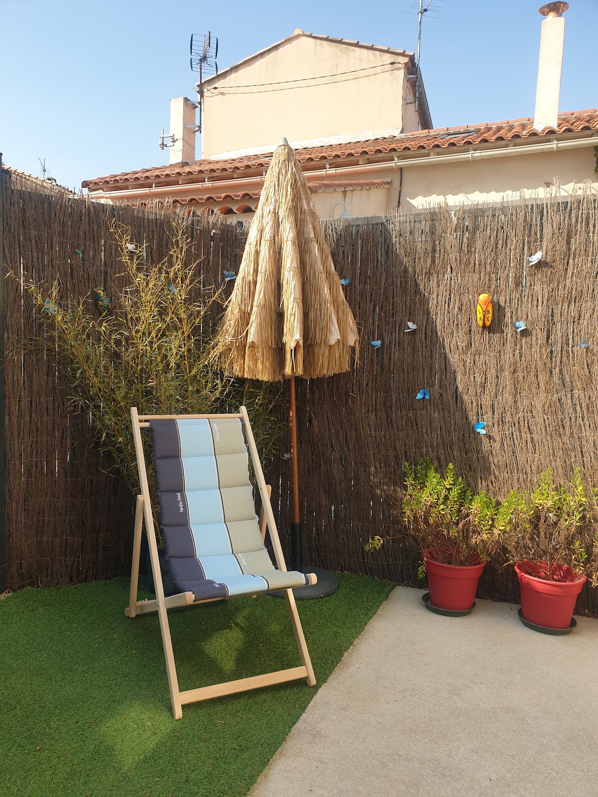 Coqueto apartamento de 30 m3 de nueva construcción. centro de la ciudad totalmente equipado con todas las comodidades y jardín. Cerca de las tiendas 10 minutos de la playa 10 minutos del aeropuerto 25 minutos de Marsella 25 minutos de Aix-en-Provence A 30 minutos de la Camarga 10 minutos de la estación de tren de alta velocidad de aix A 5 minutos del parque de atracciones Magic Land