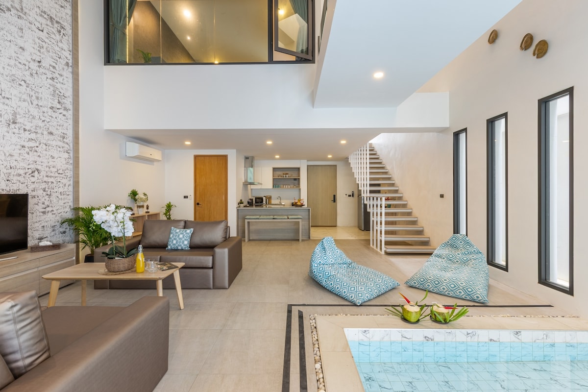 Disfruta del refugio tropical perfecto a pocos minutos de la vibrante aldea de pescadores. Esta villa de 1 dormitorio de estilo balinés es la escapada perfecta para parejas o viajeros solitarios que buscan una serenidad completa. Adéntrate en tu oasis de piscina privada, completo con tumbonas para la máxima relajación bajo la sombra de las palmeras que rodean la villa. Disfruta despertando con vistas a la piscina desde los ventanales del suelo al techo. La cocina y el salón ofrecen la comodidad del hogar y el lujo de un centro vacacional de 5 estrellas.