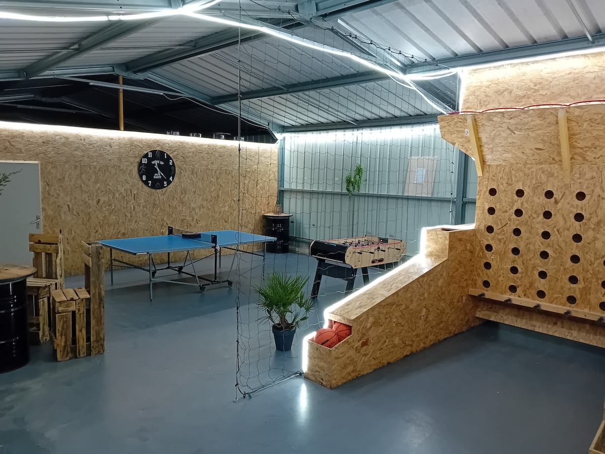 Venez découvrir cette maison à la campagne avec salle de jeux, "Le Ti'chey-toi", de 1 à 5 voyageurs, 1 chambre avec 1 lit double et 1 autre avec 1 lit double et 1 lit simple, 1 cuisine entièrement équipée,( Four, plaque induction, réfrigérateur/ congélateur, Lave vaisselle, machine a café Dolce Gusto, grille pain, presse agrumes) 1 salle de bain avec douche et baignoire, 1 espace extérieur avec Spa 2 places couvert et accès à la piscine familiale pendant la période d'été