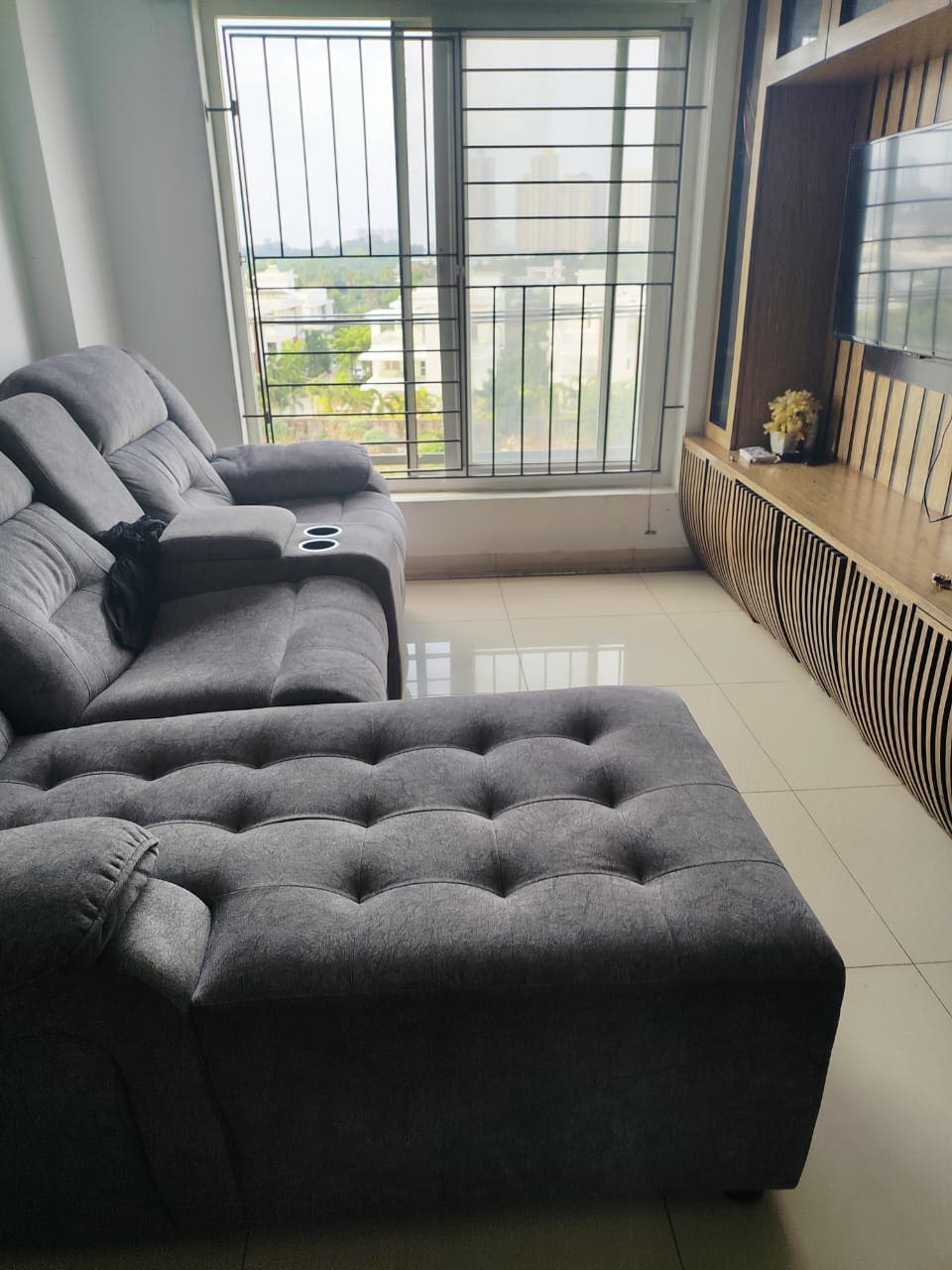 Este acogedor apartamento compacto de 1 habitación y cocina con temática india es ideal para estadías largas o mensuales. - Apto para parejas. 🎥 Un proyector de pantalla para una experiencia de visualización estilo cine. Un sofá cama pequeño para mejorar tu experiencia visual en el salón con aire acondicionado 🌆 Ubicado en el décimo piso de un edificio seguro y cerrado cerca de Maduravoyal Flyover. 🌇 Un balcón orientado al oeste con impresionantes vistas al atardecer (¡perfecto para tu café de la tarde!) Espacios 🐾 aptos para mascotas y familias