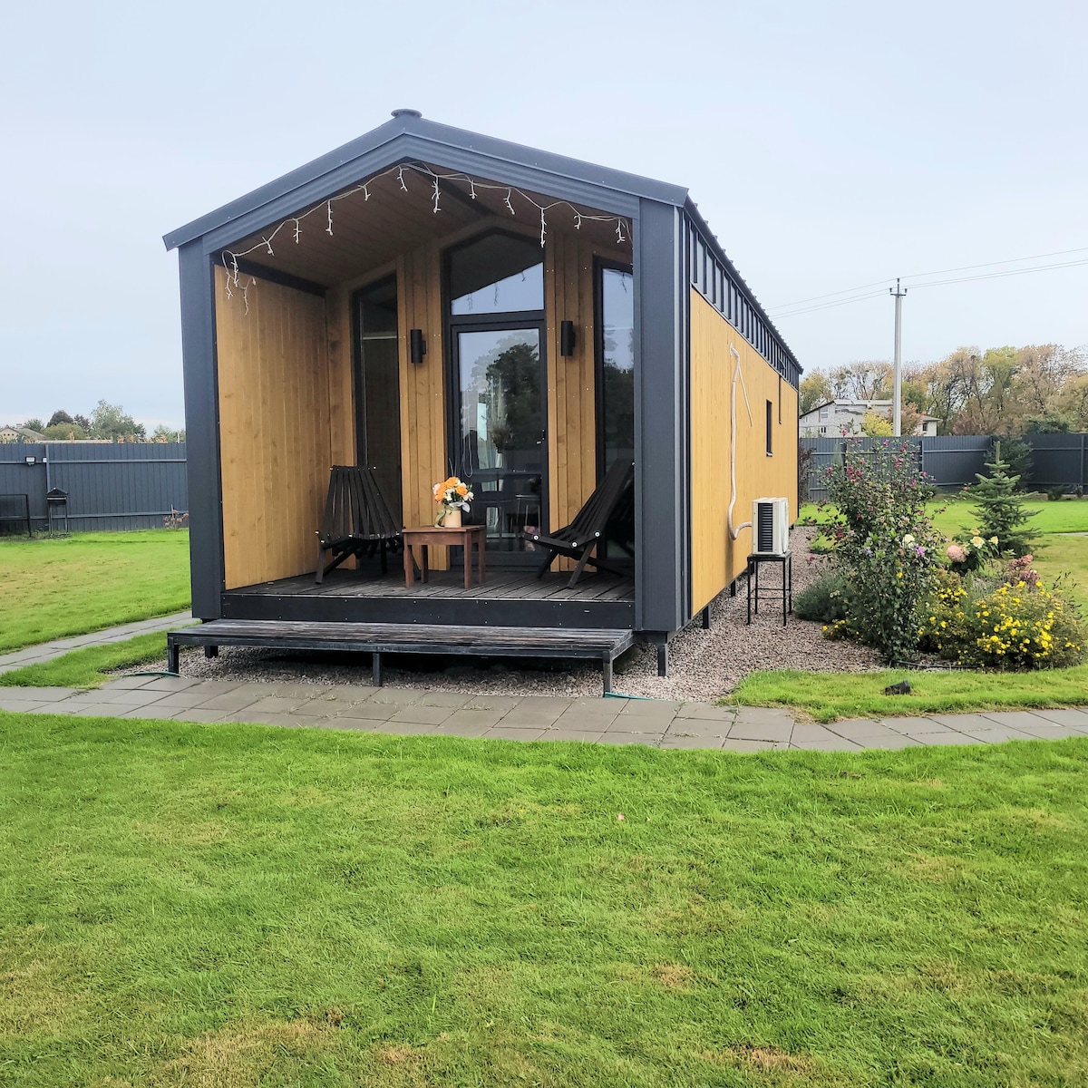 A 40 km de Kiev. Pueblo de Vytachiv. Se ofrece para alquiler diario de una casa modular de 52 m2 con ventanas panorámicas. La casa se encuentra a 300 metros de la capilla y de un molino de viento de madera. La empinada orilla y el amplio vertedero del Dnieper con islas crean un ambiente increíble, un verdadero lugar de poder. Muy cerca se encuentra la panadería Vytach. La casa tiene su propio patio con zona de barbacoa, terraza y chimenea. La base tiene una sauna, una bañera de hidromasaje con hidromasaje por un pago adicional y una piscina cálida de temporada.
