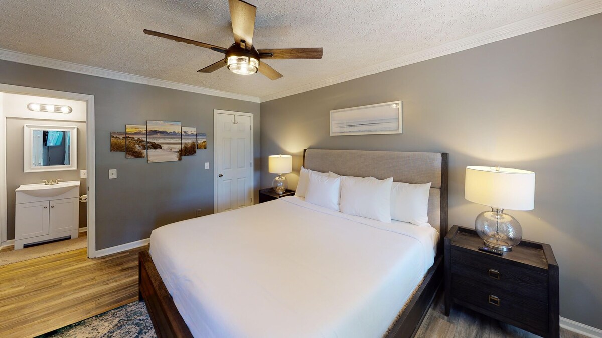 Relájate y desconecta en tu cómoda habitación con entrada privada desde tu terraza. Disfruta de tu televisor de 40 pulgadas desde la cómoda cama completa. ¿Necesitas espacio para trabajar? Tienes una bonita mesa de café y sillas en tu habitación y en tu patio. Tu cocina pequeña tiene un pequeño fregadero, nevera, microondas, olla caliente, cafetera de goteo/Keurig, platos y armarios de almacenamiento. Disfruta de suaves toallas blancas y sábanas suaves. También cuenta con plancha y tabla de planchar.