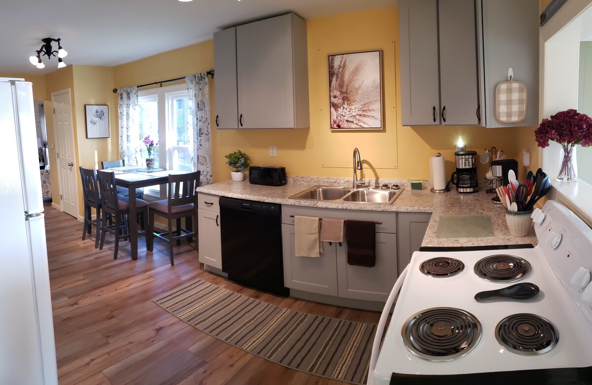 Escápate a una casa de 3 camas y 2 baños en Wellesley Island con vistas al campo de golf. Los techos de la catedral y una sala de estar/cocina de concepto abierto proporcionan una sala de estar espaciosa. Disfruta de un garaje adjunto de 2 puestos, una entrada privada y un carrito de golf. Miles de rutas de senderismo comienzan en el jardín. Relájate en la cubierta trasera con parrilla. Perfecto para familias, golfistas y amantes de la naturaleza, este refugio de campo de golf de lujo ofrece relajación y actividades al aire libre. ¡Reserva tu estancia ahora para disfrutar de un refugio privado en Wellesley Island!
