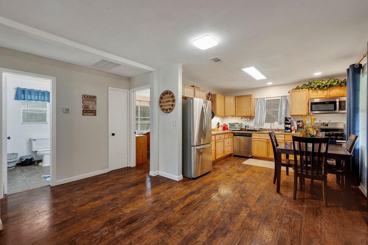 Zavalla, Texas Casa entera, 2 dormitorios En un barrio tranquilo, a solo minutos de los embarcaderos de Monterey Park y Cassells Boykin Park, tiendas de cebos, restaurantes y apto para mascotas. Perfecto para un viaje de pesca de fin de semana, establece una hora de registro posterior sin cargos adicionales, disfruta de tu noche viendo la televisión o escuchando música. También hay un generador Generador que se enciende y apaga automáticamente cuando se va la luz.