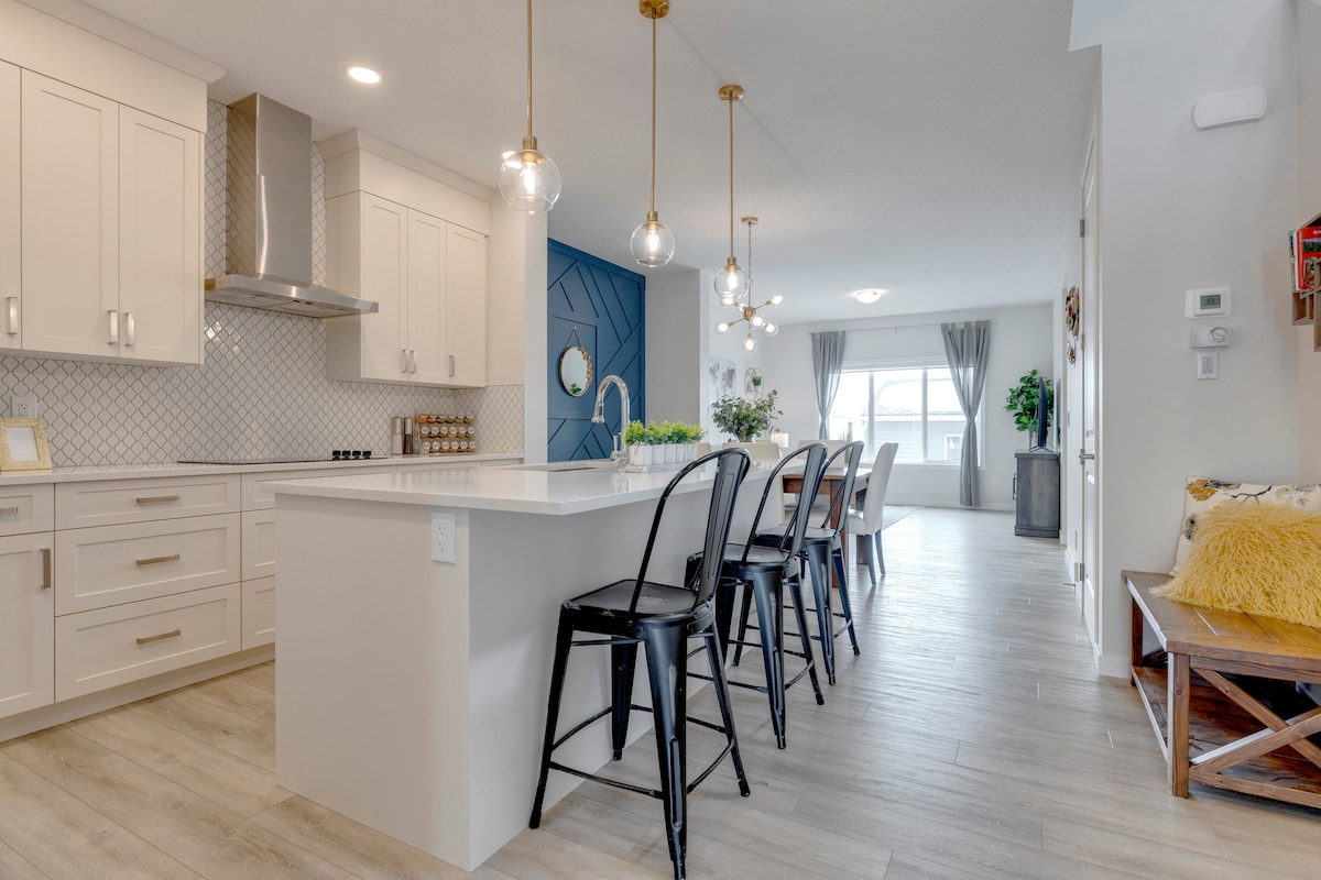 Esta hermosa joya se encuentra en el corazón de la comunidad de resort más importante de Calgary: ¡caoba! ¡Acceso directo a las rutas de autobús! Ligero y luminoso, trabaja desde la casa en un trabajo acogedor desde la oficina en la casa. La casa bien equipada tiene 2 habitaciones familiares con televisores separados, 4 dormitorios con colchones de espuma viscoelástica súper cómodos y grandes ventanas hermosas. ¡Cerca del SteakHouse y el café analógico del presidente! Da un paseo para ver el esplendor de los humedales de caoba o dirígete al parque acuático en la YMCA más grande del mundo, ¡a solo unos minutos!