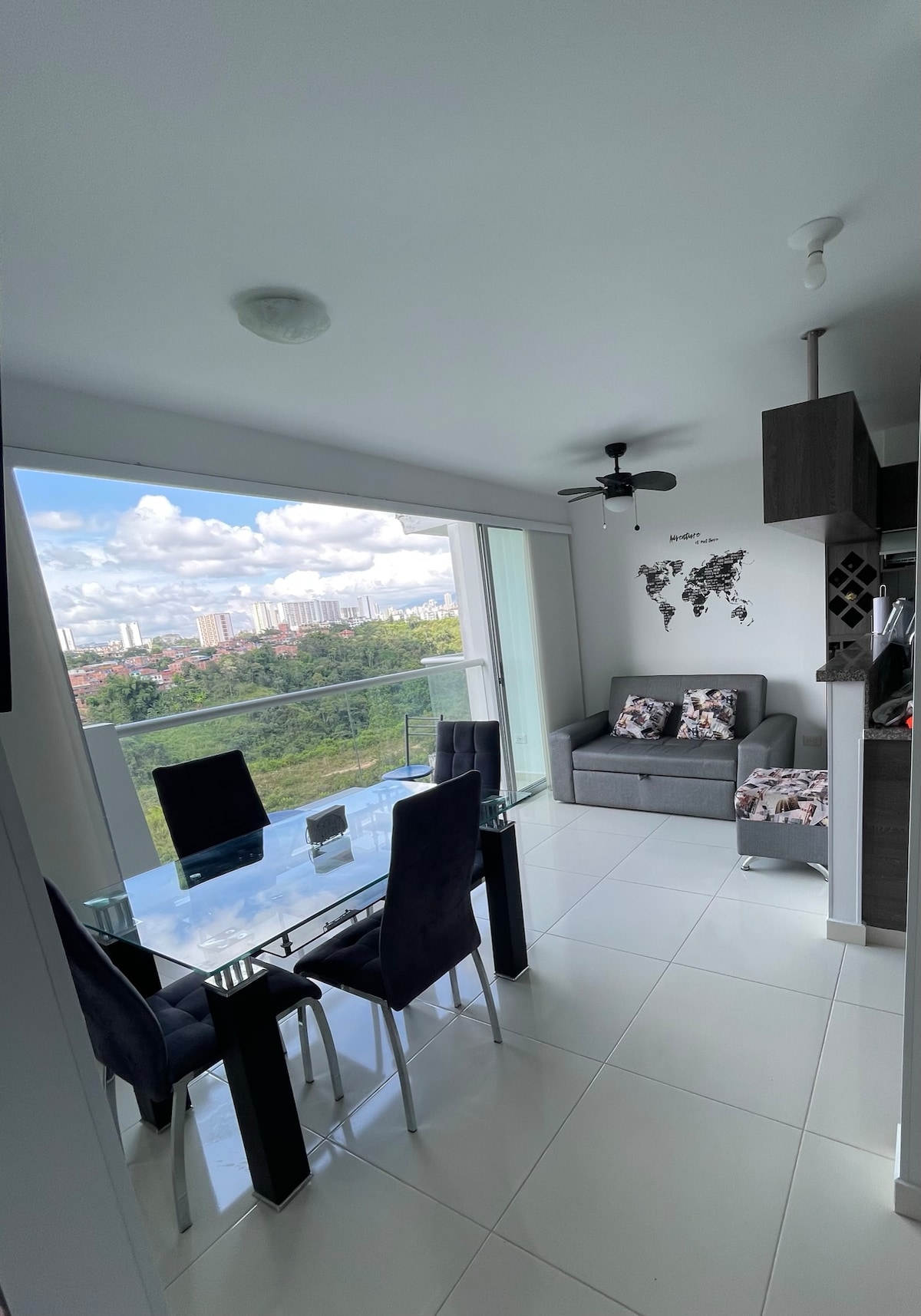 Espectacular apartamento privado de 1 habitación en el piso 24 con vista panorámica al centro de la ciudad. La sala-comedor cuenta con mobiliario moderno y cómodo. La cocina está equipada con lo esencial, permitiéndote preparar tus propias comidas. La habitación ofrece tranquilidad para descansar después de un largo día. Comodidad y practicidad en un solo lugar. Nota: la piscina esta cerrada hasta nuevo aviso PROHIBIDAS LAS VISITAS Y EL CONSUMO O SUSTANCIAS PSICOACTIVAS porque habrá MULTA.