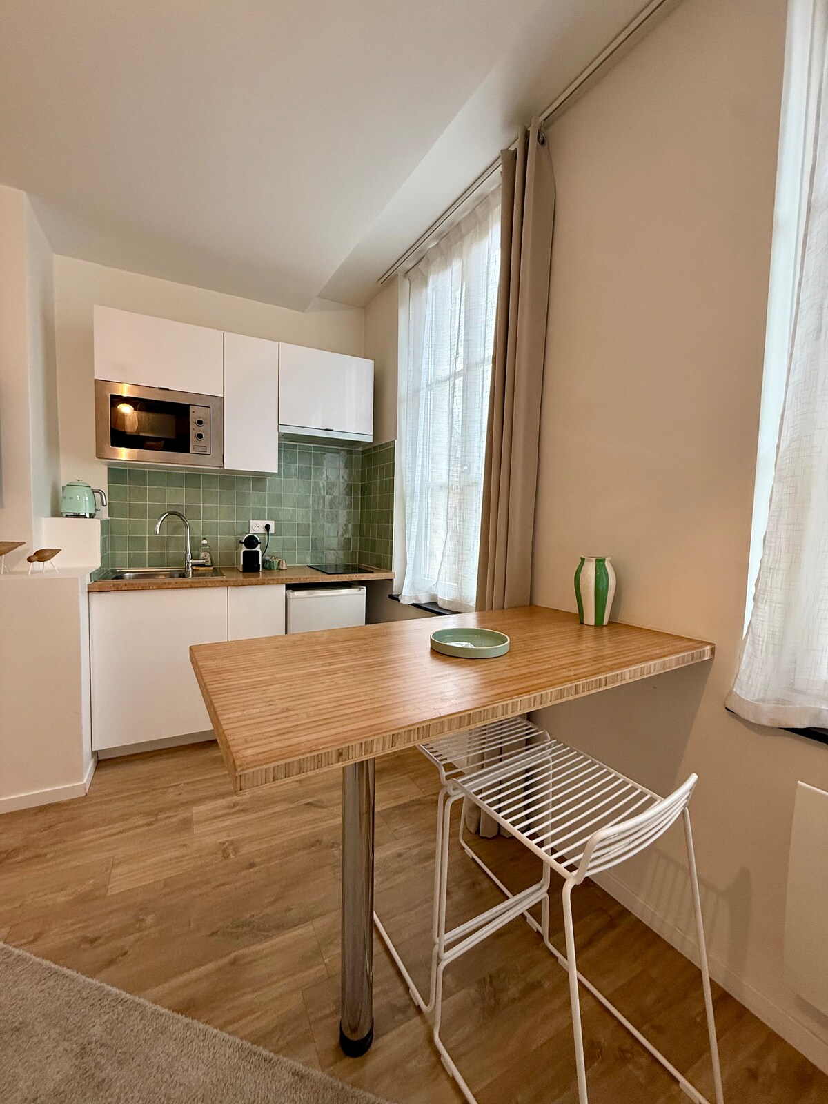 Venga a descubrir nuestro encantador estudio completamente renovado por un diseñador de interiores, con buen gusto y equipamiento de calidad, que combina la modernidad y el encanto de lo antiguo Se encuentra en Place Saint Jacques en una pequeña y encantadora copropiedad que data de 1750, situada en el centro peatonal de Metz, a 1 minuto a pie de la Catedral, a 10 minutos de la estación de tren, a 12 minutos del Centro Pompidou Esta ubicación satisfará los deseos de todos, la proximidad a la estación de tren, así como a los bares, restaurantes y monumentos culturales.