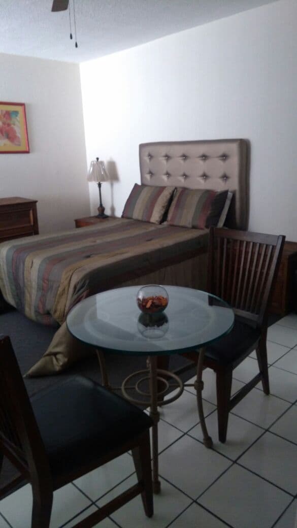 Un suite hermoso con entrada privada. Dos dormitorios con colchones cómodos, uno con cama tamaño King y otro con cama tamaño Queen. Un dormitorio tiene escritorio para trabajar. Tenemos cortinas gruesas que no dejan entrar la luz de la mañana. La sala tiene sillón y tele de 55 pulgadas. Hay una mini "cocina" con un refrigerador pequeño, cafetera, tostador, y microondas. El fondo esta arreglado y con patio privado. Wifi fuerte.