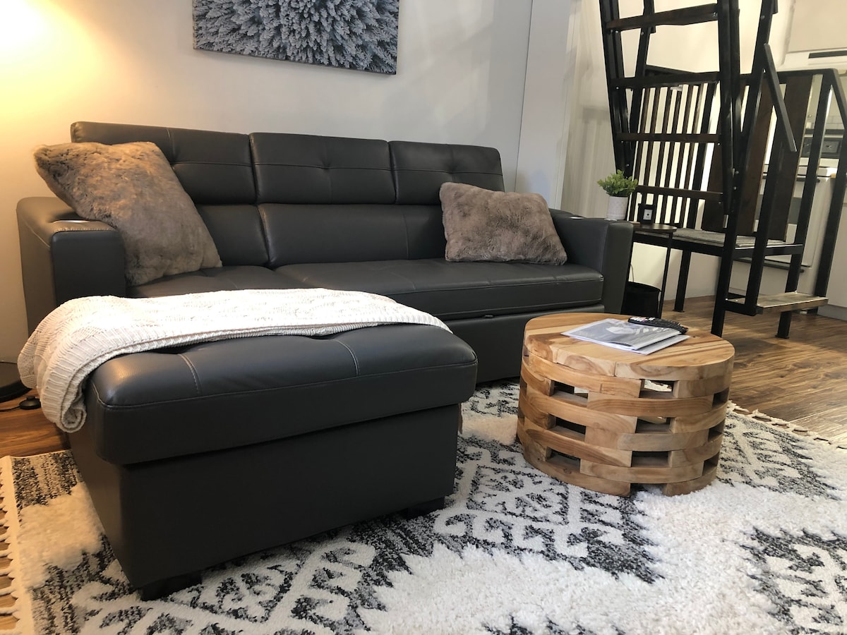 Disfruta de una experiencia de lujo en este céntrico alojamiento. Capacidad para 4 personas cómodas (cama tamaño queen, un sofá plegable tamaño queen, colchón de aire doble), TV inteligente de 55 pulgadas/wifi gratuito/TV Box (todos los deportes, películas, Netflix), barra de sonido bluetooth (sala de estar y baño), juegos de mesa, chimenea de leña, barbacoa. Esquí en esquí fuera/pub/restaurante a poca distancia, hermosas caminatas, ciclismo de montaña, todoterreno, excelentes vistas y lagos cercanos, piscina (temporada de verano)/bañera de hidromasaje/sauna (todo el año), sala de servicios y sala de juegos.