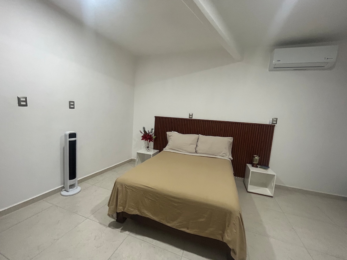 ¡Precioso departamento con todo lo que necesitas para una estancia cómoda y relajante! Ubicado a solo metros de la central de autobuses, en una calle tranquila, segura y bien iluminada. Transporte público en la esquina y estacionamiento frente al edificio en calle privada cerrada. Este amplio y limpio espacio cuenta con excelente ventilación, grandes ventanales, WiFi, televisión y una cocineta equipada con refrigerador, horno de microondas, fregadero y área de lavado.