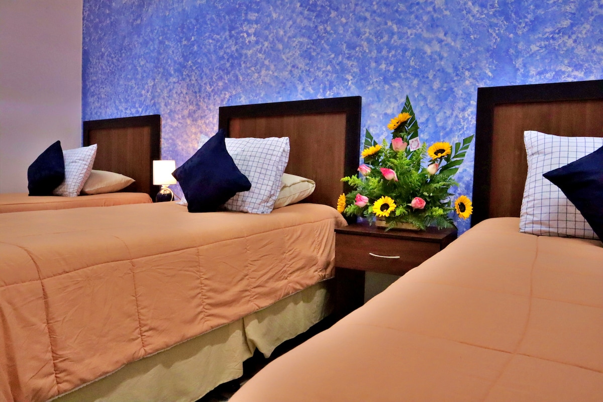 Disfruta de una experiencia en esta elegante habitación individual (el precio es para 1 persona, si agregas a una segunda persona, son adicionales $44.25 dólares x noche) con baño/ducha privado incluido, parqueo anexo gratuito a 4 cuadras con servicio de microbús de ida y vuelta. No dejes pasar la oportunidad de aprovechar el descuento que estamos obsequiando por ser de los primeros en hospedarse aquí. ¡Siéntete desde ya bienvenido!