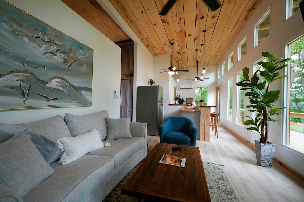 Cabaña Luxe de 2 dormitorios con terraza y vista al arroyo | Granja en funcionamiento