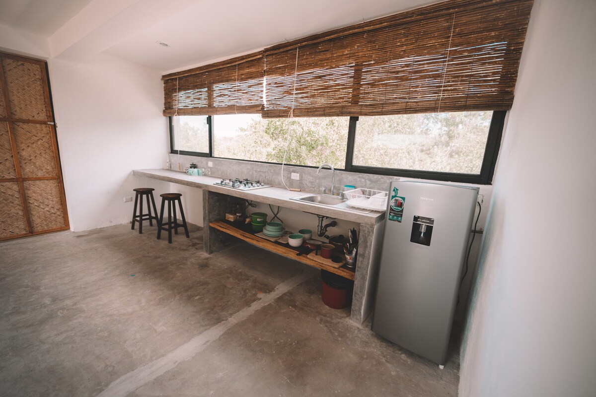 15% DISCOUNT per week JUST 3 BLOCKS FROM THE BEACH Beautiful and spacious Loft (60m2), relax and connect with nature, enjoy the sounds of birds and contemplate beautiful sunsets. Everything you need to cook with a dream landscape We are committed with environment, we use sustainable energy Located in the residential area, we have nearby: • Punta Ciricote, 7 minutes walk, you will love this beach. • Punta Cocos, 8 minutes walk. • Beach & Beach Club, 5 minutes walk. • Restaurants, 5 minutes walk.