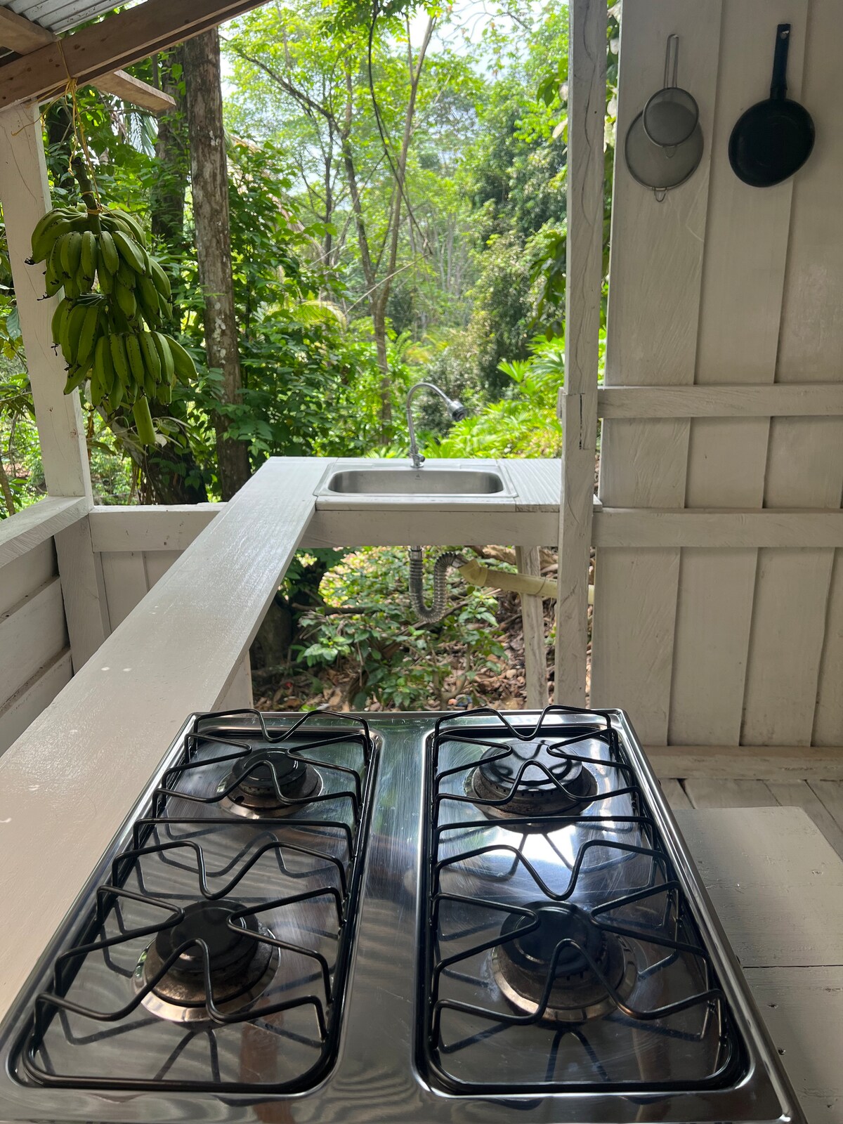 Close your eyes and listen to the sound of the ocean waves behind the chirping jungle forest that surrounds this private space. A little sanctuary completely shut off from the world. It’s close to all the village restaurants and a 3 minute walk from the magical Sapzurro bay which can be admired from the personal garden of the cabin. If you just walk up the stone staircase you will find yourself with a breathtaking view of how the Choco jungle embraces this stunning Carribean bay.