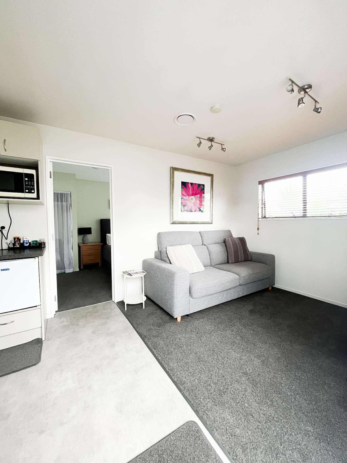 A 2,7 km de Te Kaha (One NZ Stadium) ESQUIADORES - Ciclistas - Bienvenida Este es un espacio tranquilo y relajante de planta abierta de 1/4 de acre cerca del centro de la ciudad. El dormitorio, la sala de estar y la cocina ocupan un espacio abierto. Se puede preparar un sofá cama cómodo, pero tiene un costo de $25 por noche. Tenés acceso a un jardín compartido, arbustos, flores, helechos y una PISCINA DE SPA ubicada en el helechal. Podés dejar las valijas y las bicicletas, y se pueden CERRAR con llave.