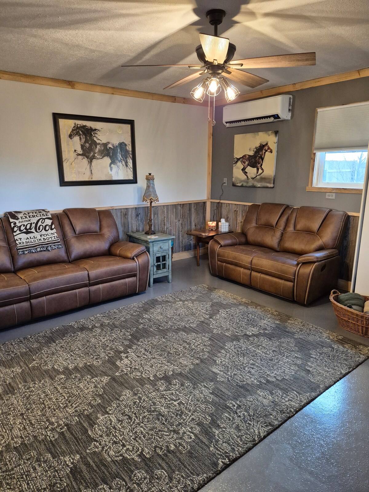 Nothing fancy but has room for the whole family and pets at this peaceful place to stay. it's a older home that is going through minor repairs. it's pets friendly so it sometimes smells like previous pets. the house is basically surrounded by fields so it gets dusty pretty easily