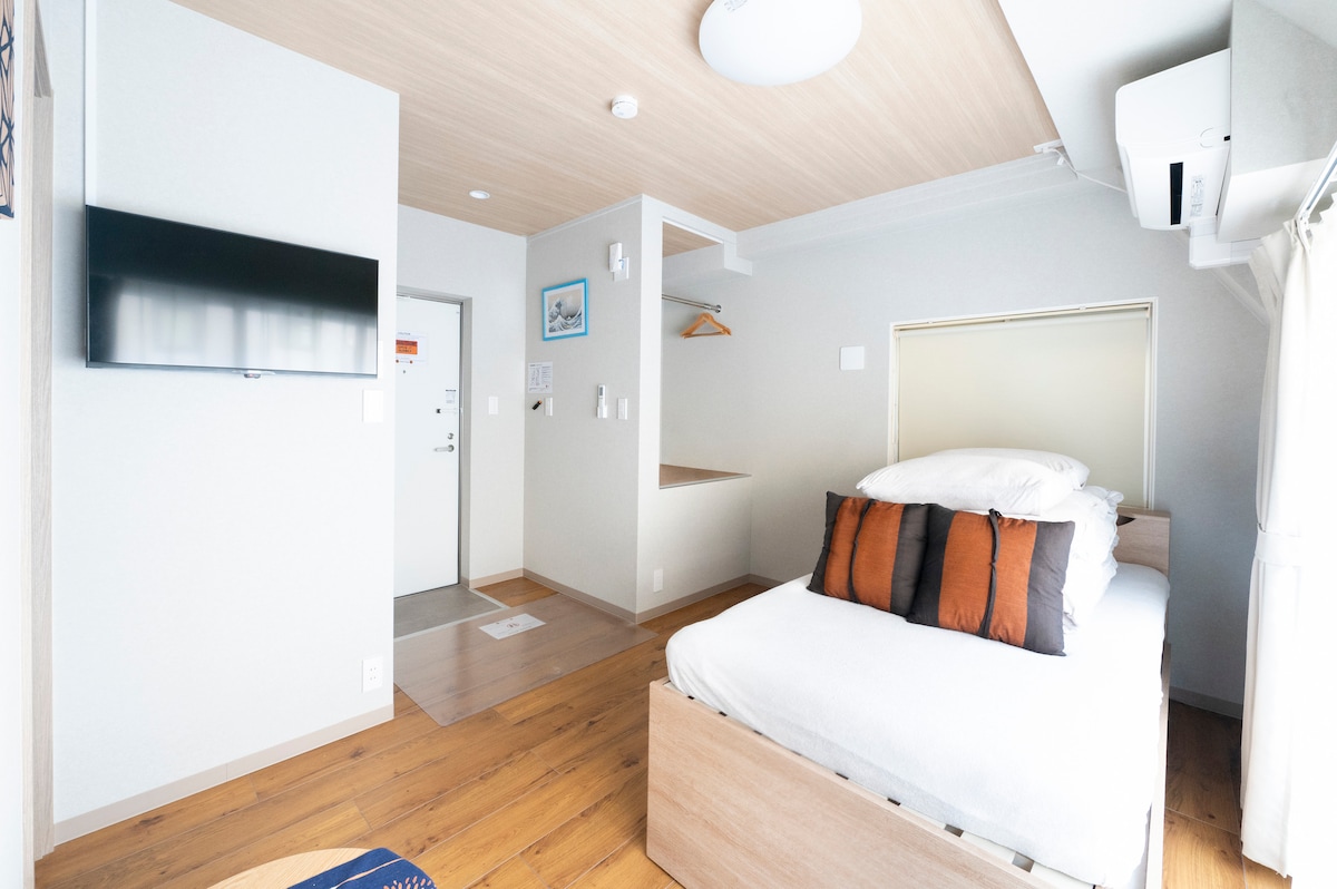 Estudio Japandi tranquilo y nuevo|Cerca de JR・Subway|Lavado y secado todo en uno|Ascensor|Almacenamiento de equipaje