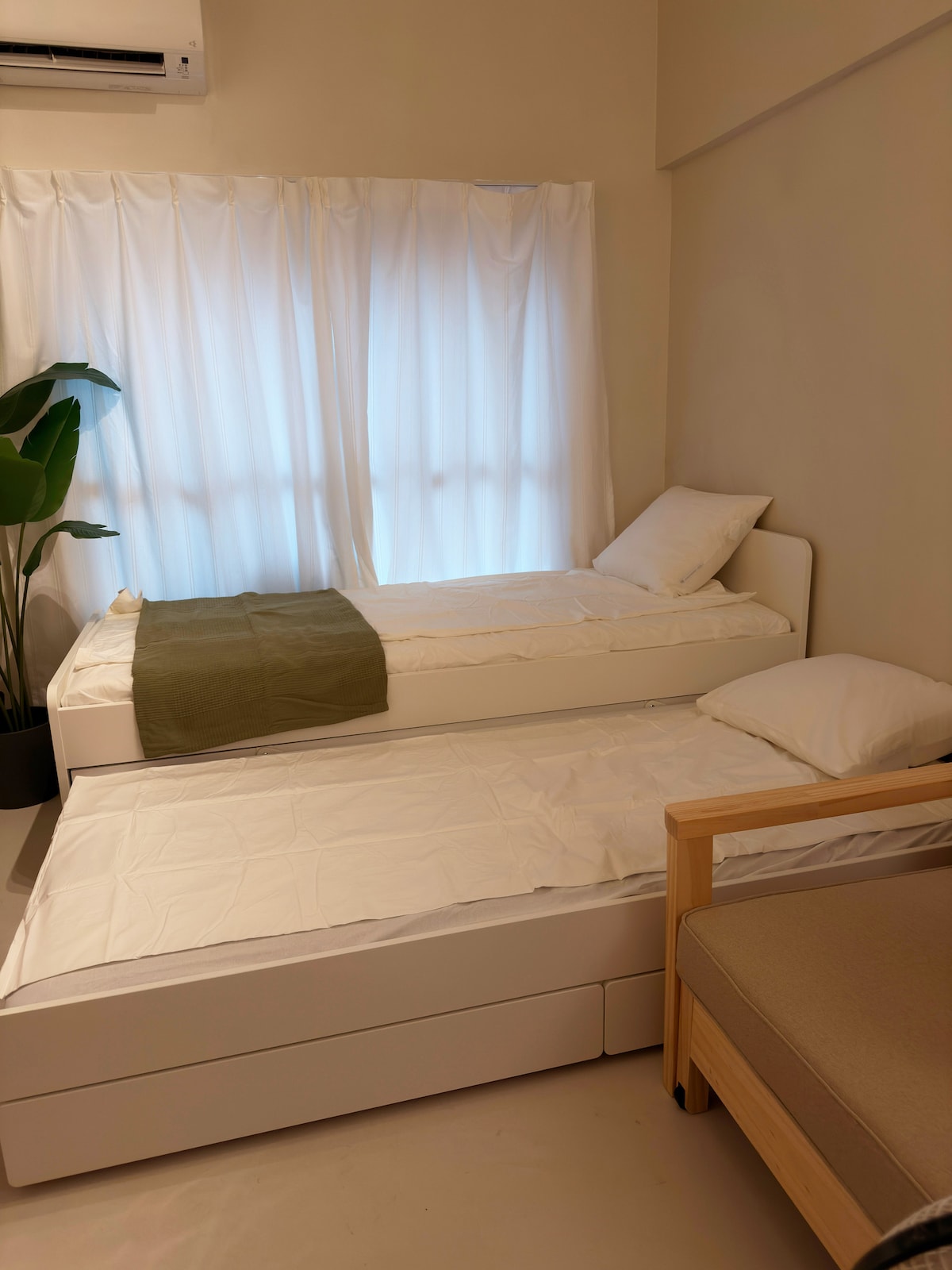 Un departamento limpio y acogedor de una habitación para una mujer, convenientemente ubicado a solo 1 minuto del metro y la parada de autobús. Hay tiendas abiertas las 24 horas cerca. La habitación incluye utensilios de cocina, una olla arrocera y una cama semi-doble Sealy para un sueño cómodo. También hay 3 lavadoras secadoras en el edificio. La estadía máxima es de 180 días al año, así que te recomendamos que reserves con anticipación. Esto se reinicia cada abril. Precios actualizados para mantener la calidad: desde 5500 JPY por noche en 2026, con posibles aumentos leves debido a la inflación de Japón.