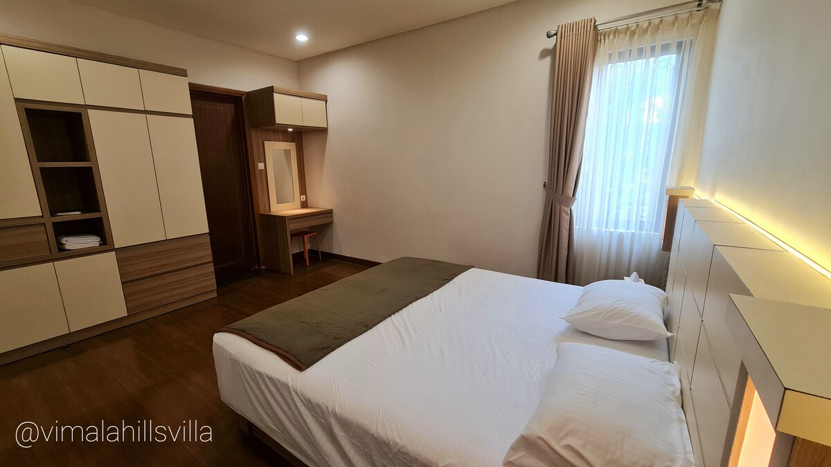 Relájate con toda la familia en este alojamiento tranquilo. Nuestra hermosa villa ubicada en las colinas de Vimala con un ambiente fresco y hermoso, se puede llegar desde Yakarta en solo 1 hora, cerca del Pullman Hotel y de la famosa zona turística en la cima como Cimory Dairyland, Cimory Riverside, Taman Safari, etc. Instalación alrededor de nuestra villa : Casa club con piscina para niños Lake Deer Park Flower Hills 24 horas de seguridad