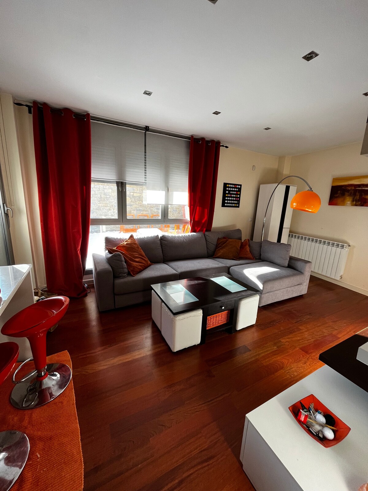 Piso nuevo ( 15 años de antigüedad) muy luminoso en pleno centro de Jaca, situado en la Plaza Biscós junto a la catedral, orientado a dos calles. Dispone de 3 habitaciones, una doble con cama matrimonio y vestidor, una doble con dos camas y una individual, 3 baños, cocina completamente equipada, con lavavajillas y un cuarto con lavadora-secadora. El edificio dispone de ascensor y wifi. No se admiten animales. Se pide un mínimo de 2 noches de estancia. Parking incluido debajo de la casa.