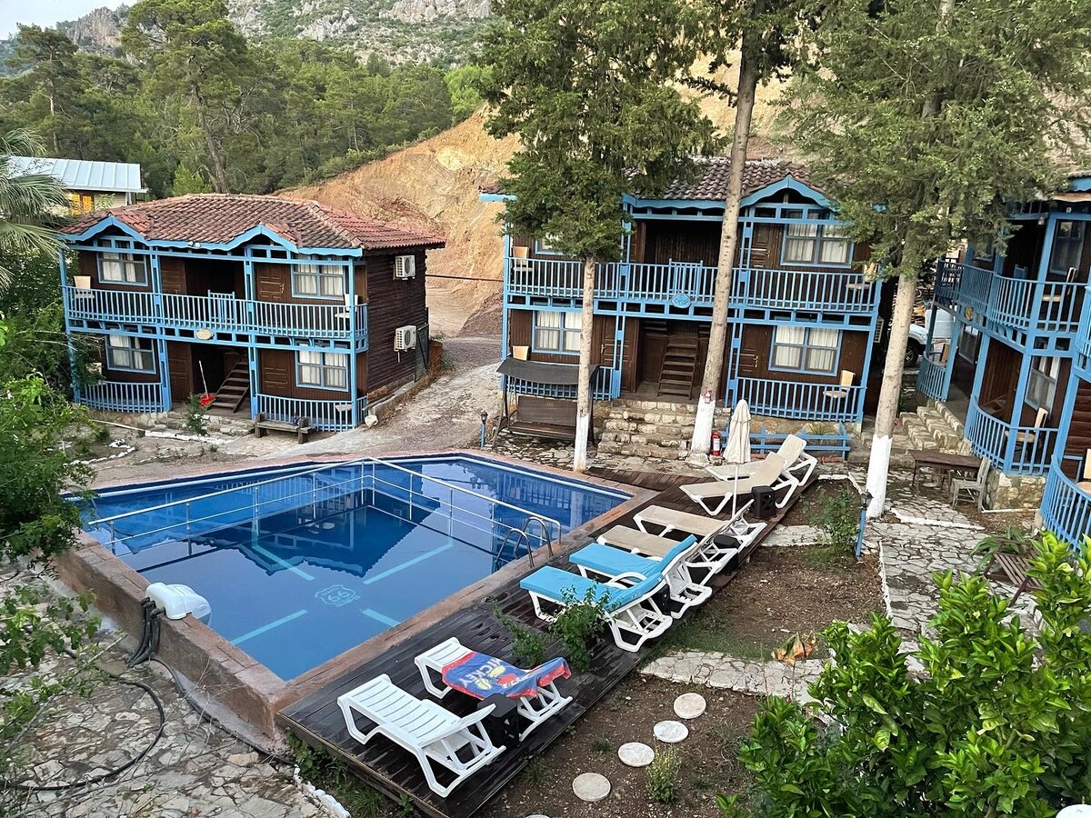 🏝️ ¡Te damos la bienvenida a Karaöz Gelidonya Pansiyon! Zona de playa 🌊 privada y tumbonas gratuitas 🛏️ Las camas más cómodas de la zona y aire acondicionado potente 🌿 Un desayuno natural preparado con productos frescos de nuestro jardín 🚗 Aparcamiento privado gratuito y una ubicación perfecta para los excursionistas de Lycian Way Ofrecemos una experiencia de alojamiento tranquila en plena naturaleza. Comienza el día con el sonido de los pájaros mientras disfrutas de un delicioso desayuno hecho con productos recién recogidos de nuestro jardín.