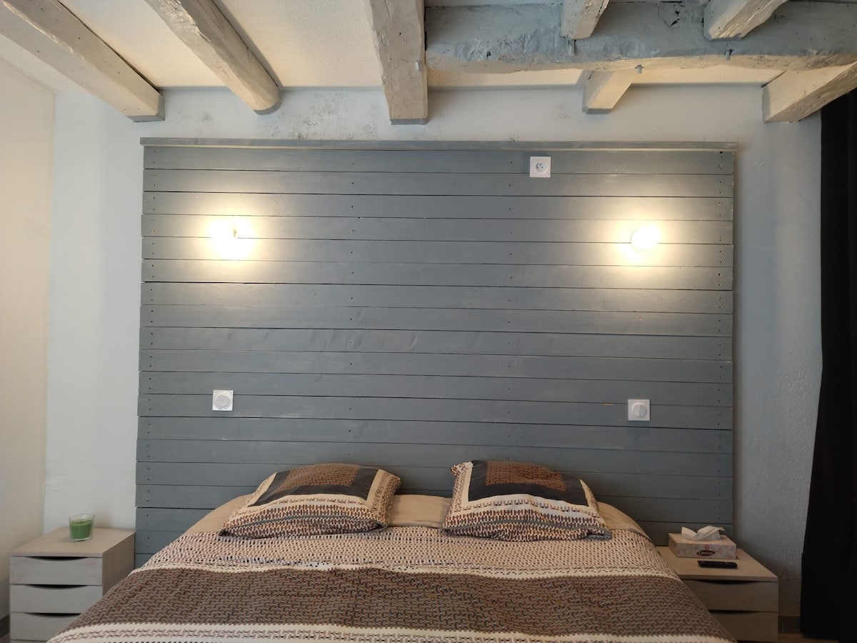 Ce logement élégant offre une toile de fond tendance pour votre séjour. Nous vous proposons une chambre avec salle d'eau privée entièrement rénovée dans une maison en pierre. Vous disposez d'une entrée indépendante et privée, d'un dressing, un espace de travail, d'un espace repas avec réfrigérateur et micro-ondes, une kitchenette, une salle d'eau avec WC, douche et un lavabo, dans une chambre de plus de 20 M2. La literie est toute neuve, lit de 160x200cm, couette et oreillers neufs, chauffage.