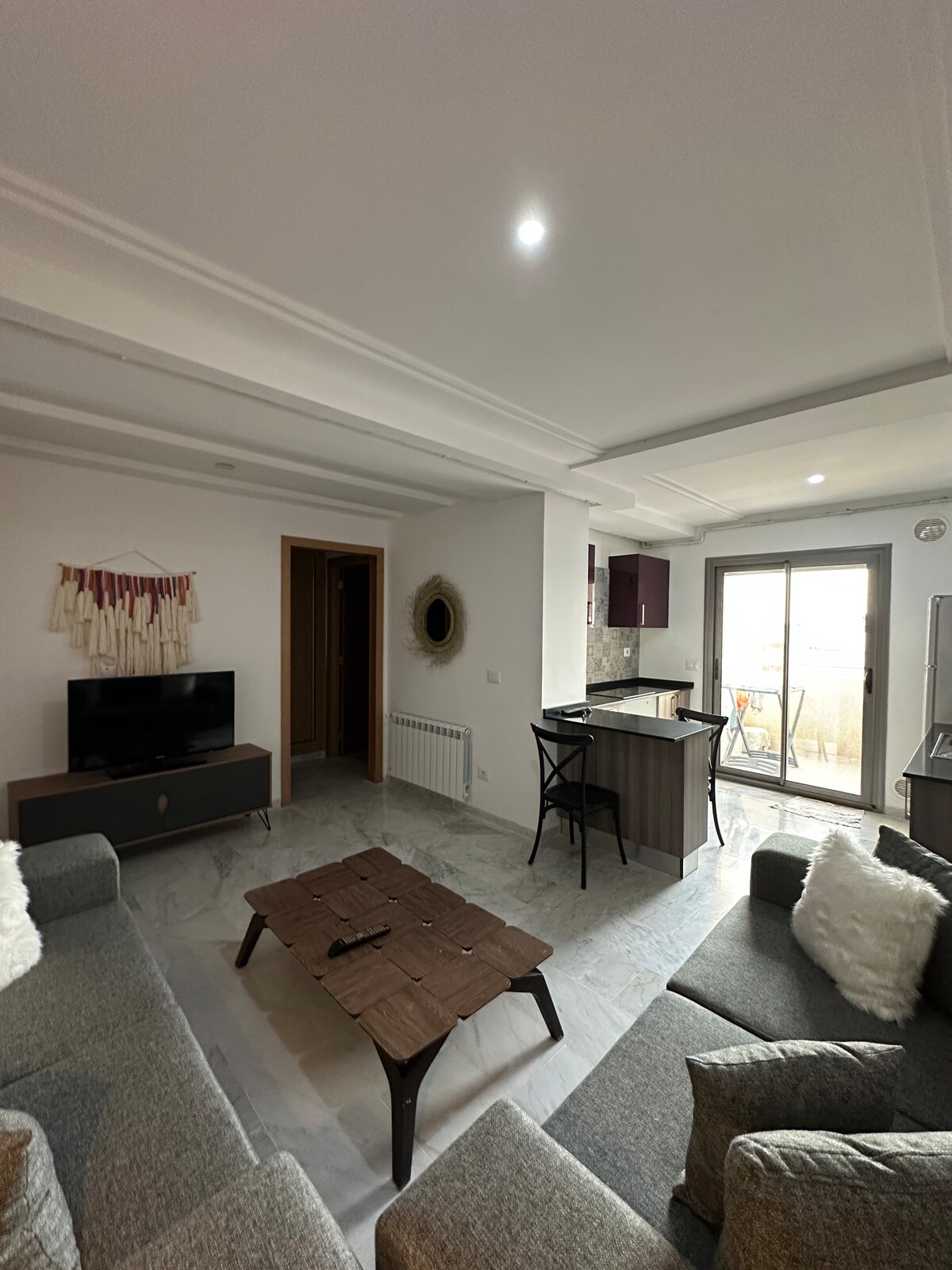 Bienvenido a su casa. Este luminoso departamento en el tercer piso con una hermosa vista, decorado con piezas artesanales tunecinas y toques bohemios chic. Disfrutará de un salón soleado, dos acogedoras habitaciones, una cocina agradable, un hermoso baño renovado y un pequeño balcón donde se respira el Mediterráneo. Cada detalle ha sido cuidadosamente elegido para crear un ambiente auténtico, relajante y cálido, ideal para descansar, trabajar o explorar la región.