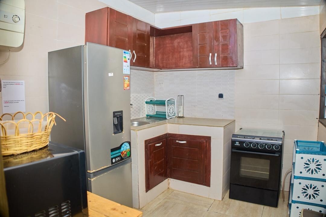 Welcome to « Le Cocon d’Aïah« —our spacious one-bedroom apartment located in Cocody, Abidjan. Designed to combine comfort, privacy, and convenience, this one-bedroom apartment offers a quiet and welcoming setting for your business or personal stays. It features an airy living room, a comfortable bedroom, a fully equipped kitchen, and high-speed Wi-Fi.