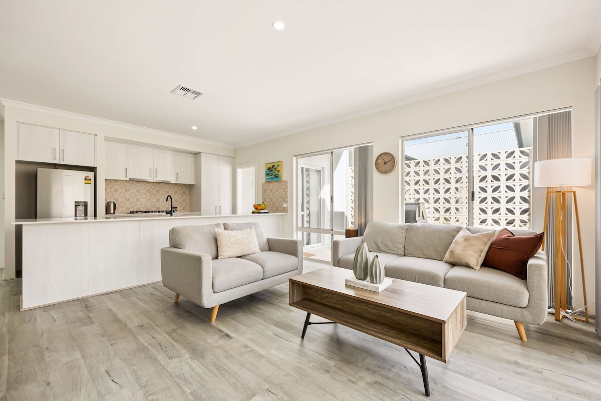 Olive Glen es una casa reformada situada en uno de los lugares más céntricos, tranquilos y bonitos de Willetton. Fuera de tu puerta hay acres de parques y pasarelas que te llevan a parques infantiles, paradas de autobús y tiendas, no es necesario conducir a ningún lugar si prefieres no hacerlo. Este alojamiento es ideal para una familia o dos parejas. La casa tiene dos salas de estar separadas y dos dormitorios con grandes armarios que permiten privacidad y una gran cantidad de espacio y almacenamiento.