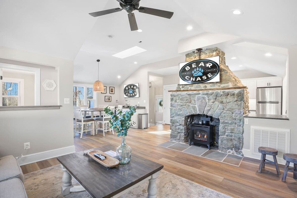 Puestas de sol impresionantes. Vistas impresionantes a la montaña. Interiores modernos escandinavos. Bienvenido a Longview House, una moderna escapada a la montaña diseñada para personas que quieren la ✨vibra✨ de una escapada al bosque, pero con las comodidades de un hotel boutique. A pasos del sendero de los Apalaches, a minutos de bodegas/cervecerías, rodeado de árboles que no juzgarán tu atuendo de jacuzzi. 🏡 3 dormitorios elegantes y dos baños tipo spa Patio 🔥 privado, fogata y jacuzzi 🗻 Espacios infinitos para relajarte y disfrutar de la vista