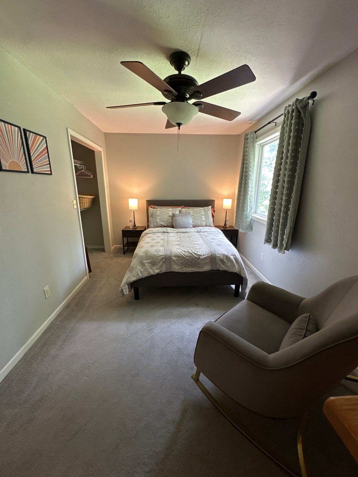 Bienvenido a mi cómoda suite de Airbnb de 25x12 en un barrio agradable y seguro a 2 minutos de la autopista y a 20 minutos del aeropuerto o del centro de Kansas City. Tu espacio privado y tu baño están justo detrás de la puerta principal y estás literalmente a 6 escalones de tu coche. El espacio incluye cocina, sala de estar y dormitorio con mucha luz natural. Mi patio delantero sombreado tiene un banco y un columpio y hay un hermoso parque al final de la calle. Hay muchas tiendas y restaurantes en un radio de 3 millas.