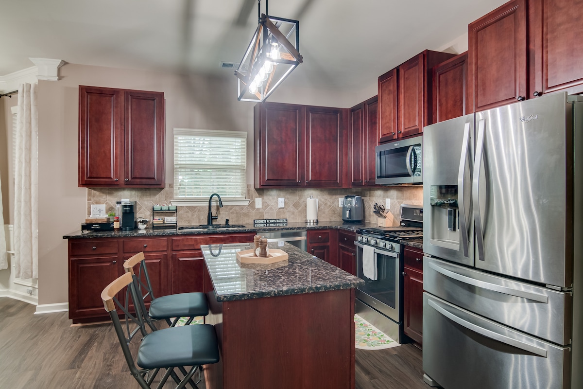 Casa de 4 dormitorios bellamente diseñada a solo 5 millas del centro de Augusta. La calidad de los muebles y las comodidades proporcionan una experiencia de primer nivel con un toque sureño. Disfruta del café por la mañana en nuestros asientos del patio trasero. Relájate durante el día y transmite tu programa favorito en cualquier televisor sin interrupciones con nuestro wifi de más de 300 MBPS. Luego relájate con la familia y ve una película después de una comida casera en el televisor de 65 pulgadas de la sala de estar, antes de acostarte.