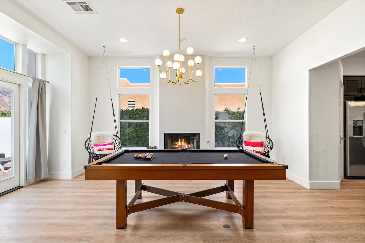 Disfruta de tu propio complejo privado con todos los detalles cubiertos. 3 dormitorios con baño en suite (el “Dormitorio 2” es una casita independiente), cada uno con televisores de 65" y ropa de cama de lujo tamaño king. El baño de 1/2 se encuentra en el salón principal. Modern Art and Design se abre a tu propia área de piscina y spa con vistas a la montaña, ubicada en el tranquilo barrio de Warm Sands en South Palm Springs, a menos de una milla del centro y de todo lo que la ciudad tiene para ofrecer. Palm Springs City ID # es 2870.