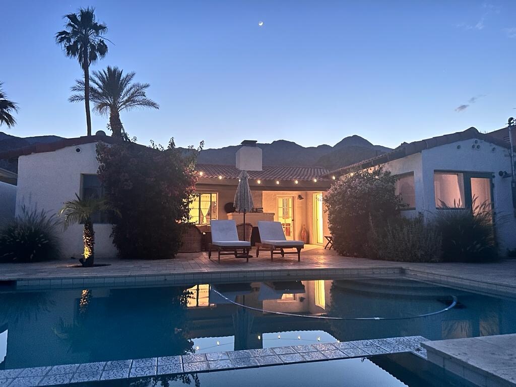 «Casita Luna» fue construida en La Quinta Cove en 1937 como una de las 63 casitas de estilo español. - Patio trasero cerrado inspirado en la tribu Cahuilla. - Piscina de agua salada y spa. - Se admiten mascotas. - Aire acondicionado/calefacción central. - Wifi seguro de alta velocidad. - Televisor inteligente HDTV de 55 pulgadas con caja de cable. - Porche trasero cubierto con chimenea exterior original de leña. - Rutas de senderismo/ciclismo cercanas. - Compras y restaurantes en el casco antiguo de La Quinta a poca distancia a pie. - Canchas de tenis públicas cerca. - Barbacoa Weber. - Ducha exterior.