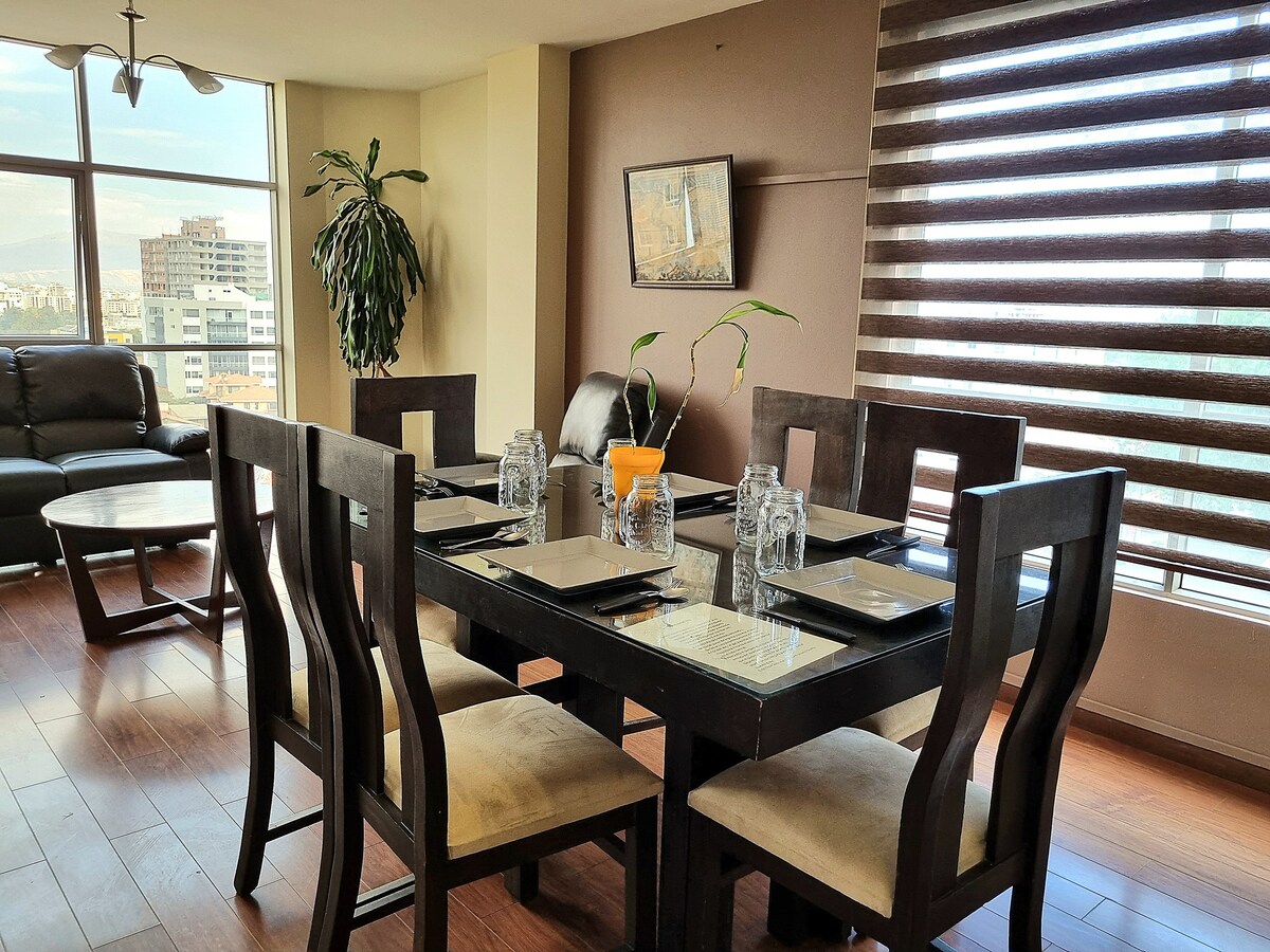 Disfruta de la sencillez de este alojamiento tranquilo y céntrico. El lugar está muy bien ubicado cerca del parque Lincon y de la Av América, una de las avenidas más importantes y visitadas en la ciudad. Todo lo necesario está muy cerca, Supermercados, tiendas, restaurantes, cafés, etc. El departamento es muy amplio y acogedor ideal para viajes de trabajo o un fin de semana de descanso. El Condominio tiene el área de sauna habilitado todos los días, la piscina para su uso en fines de semana.