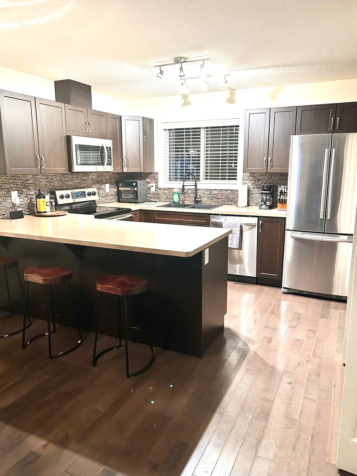 ¡Descubre la escapada perfecta en Sunset Suite en Cochrane! Nuestro encantador refugio ofrece todas las comodidades que necesitas, desde un desayuno de autoservicio hasta una relajante bañera de hidromasaje. Disfruta de la comodidad de la entrada sin llave, una cocina bien surtida y lavandería en la suite. Además, nuestro espacio apto para perros (tarifa de mascota de 35 dólares) está a pocos minutos de impresionantes vistas a la montaña y de la icónica Cochrane RancheHouse. Tiene capacidad para 4 personas con una cama tamaño queen y un sofá cama completo (10 USD por cada 3ª y 4ª persona).