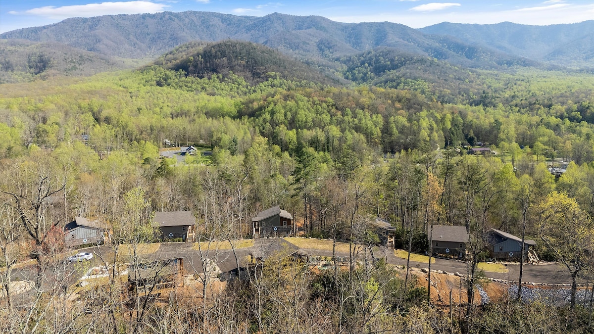 NO PET FEE! TEN MINUTES TO NATIONAL PARK! Brand new secluded 2br/2ba cabin on an acre of land TEN MINUTES to the Smoky Mountains National Park entrance. Features a hot tub, electric fireplace, arcade game loft, large yard with fire pit and yard games (cornhole, horseshoes), and gorgeous views of Mt. Cammerer from inside and out. The home contains a full kitchen with brand new appliances, open floor plan with vaulted ceilings and sweeping views, two king sized beds plus a pull