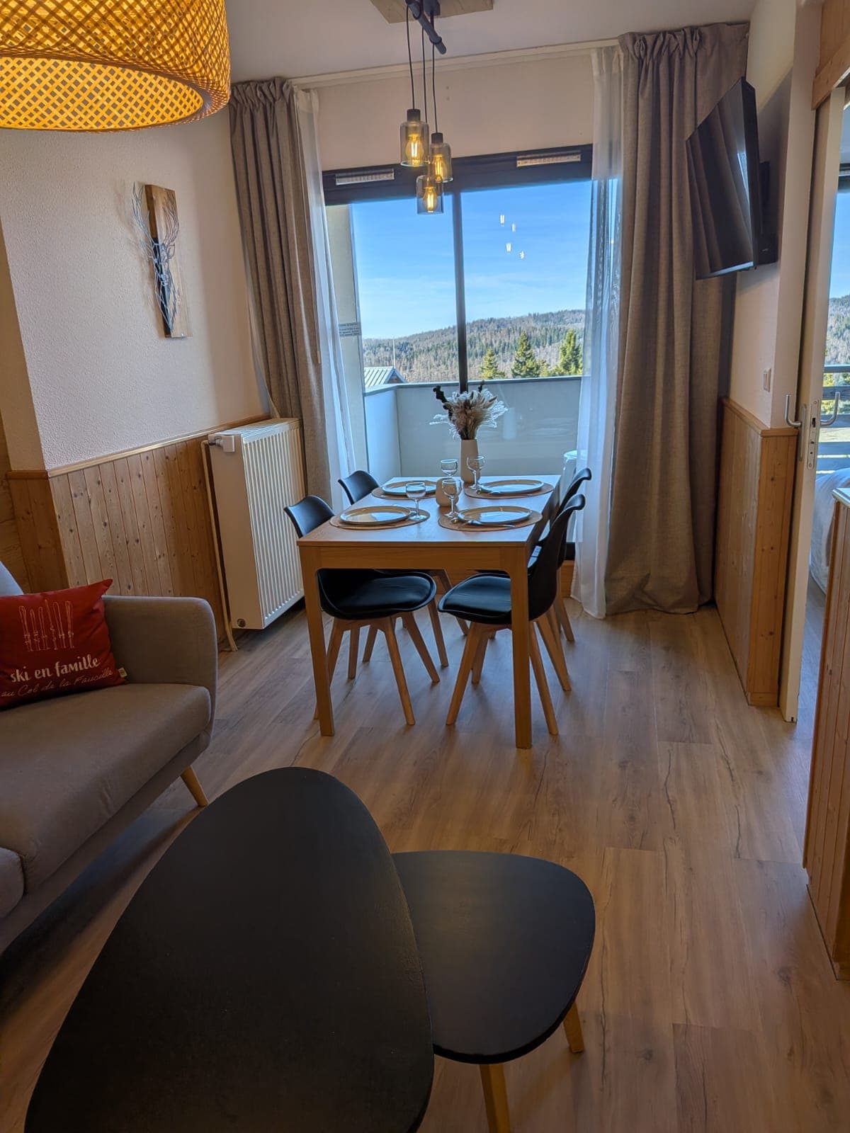 Comfortable and stylish, this apartment is located in Lajoux, in the Haut Jura Natural Park, at an altitude of 1040m. It can accommodate up to 8 people and features a fully equipped kitchen, comfortable beds, and Wi-Fi access. But what truly sets it apart is its exceptional location surrounded by forests and offering breathtaking views of the mountains, with easy access to outdoor activities such as skiing, hiking, and snowshoeing. Come and discover the natural beauty of Haut Jura.